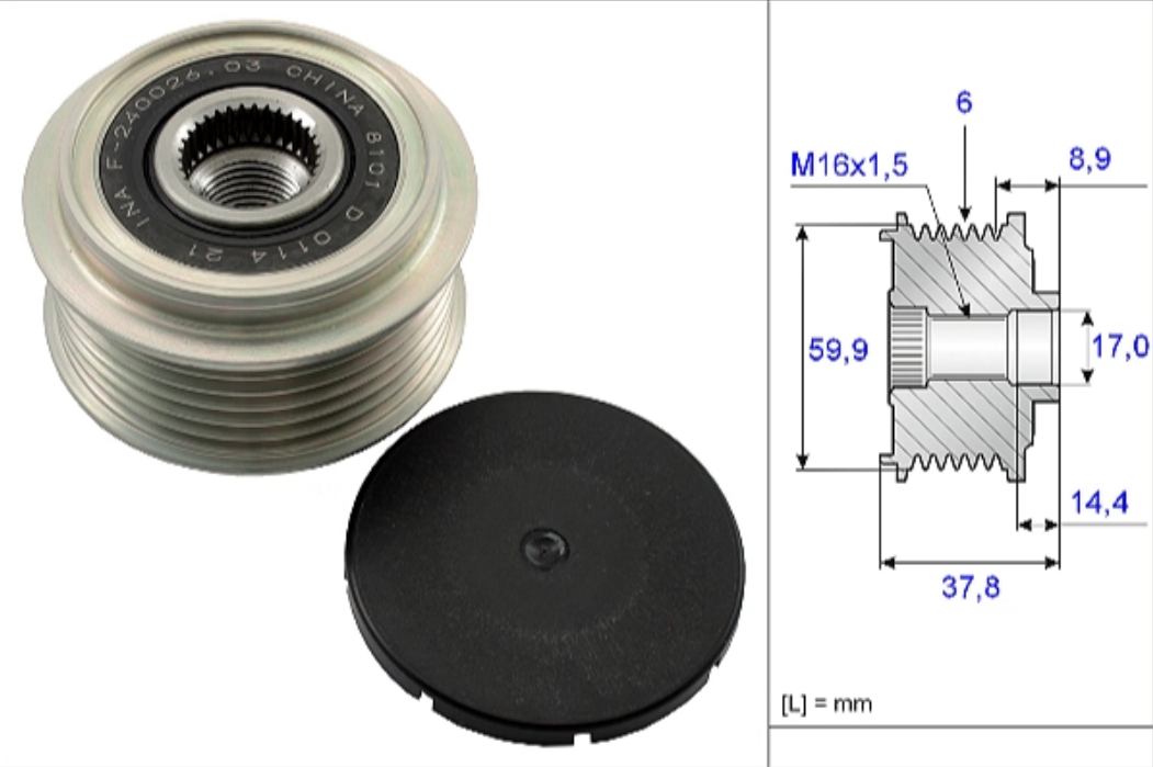 for manufacturer number F-240026.XX Number of grooves 6 Distance to first groove [mm] 8.86 Width [mm] 37.8 Diameter 1/Diameter 2 [mm] 59,9/17,0