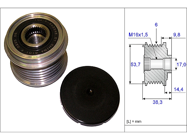 for manufacturer number F-240026.XX Number of grooves 6 Distance to first groove [mm] 9.8 Width [mm] 38.3 Diameter 1/Diameter 2 [mm] 53.7/17.0